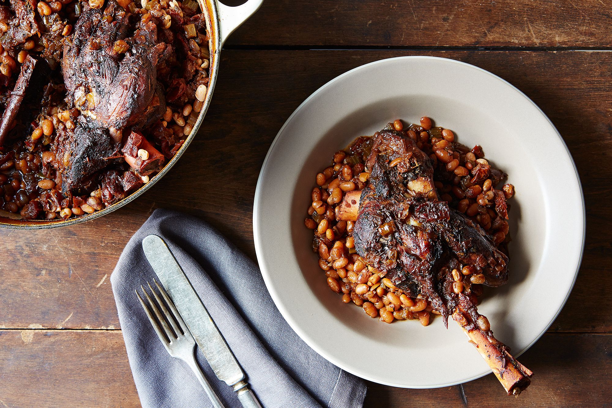Coffee-braised lamb shanks with white beans