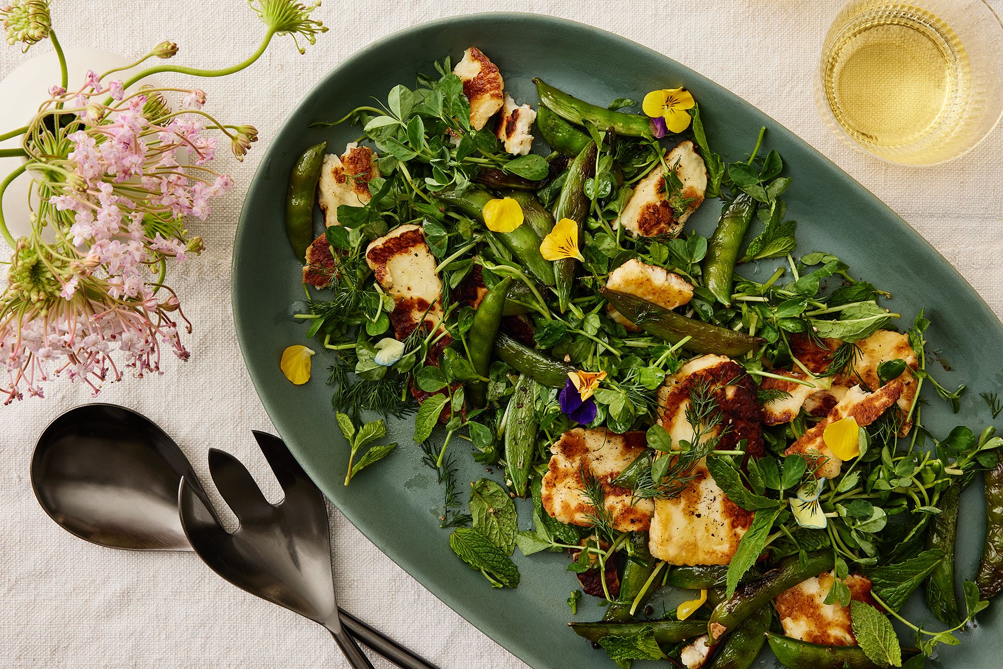 Lemony halloumi salad with snap peas