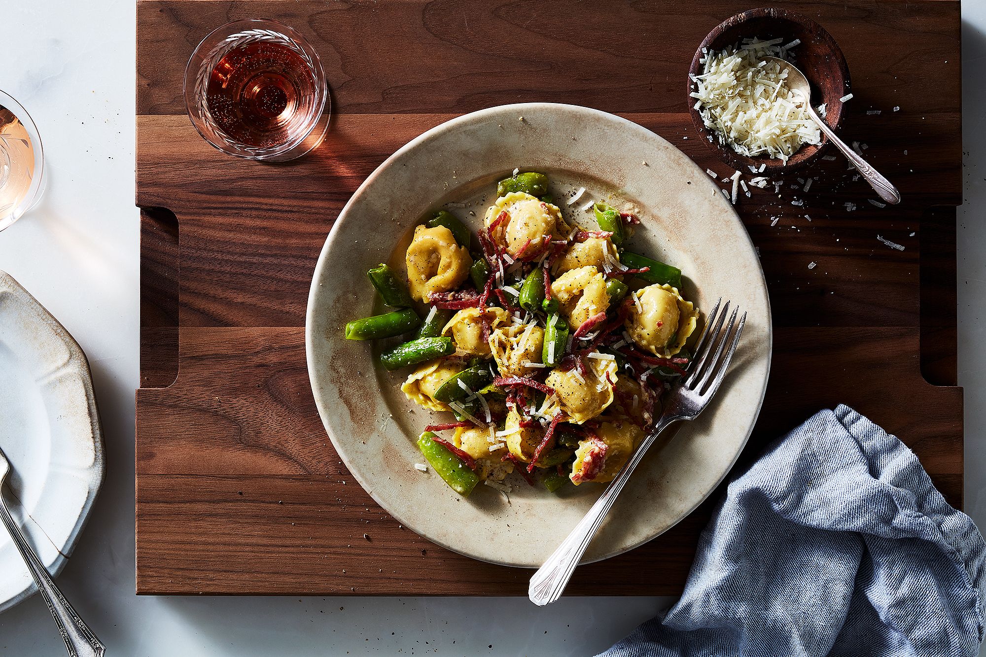 Cheese tortellini with sugar snap peas & soppressata