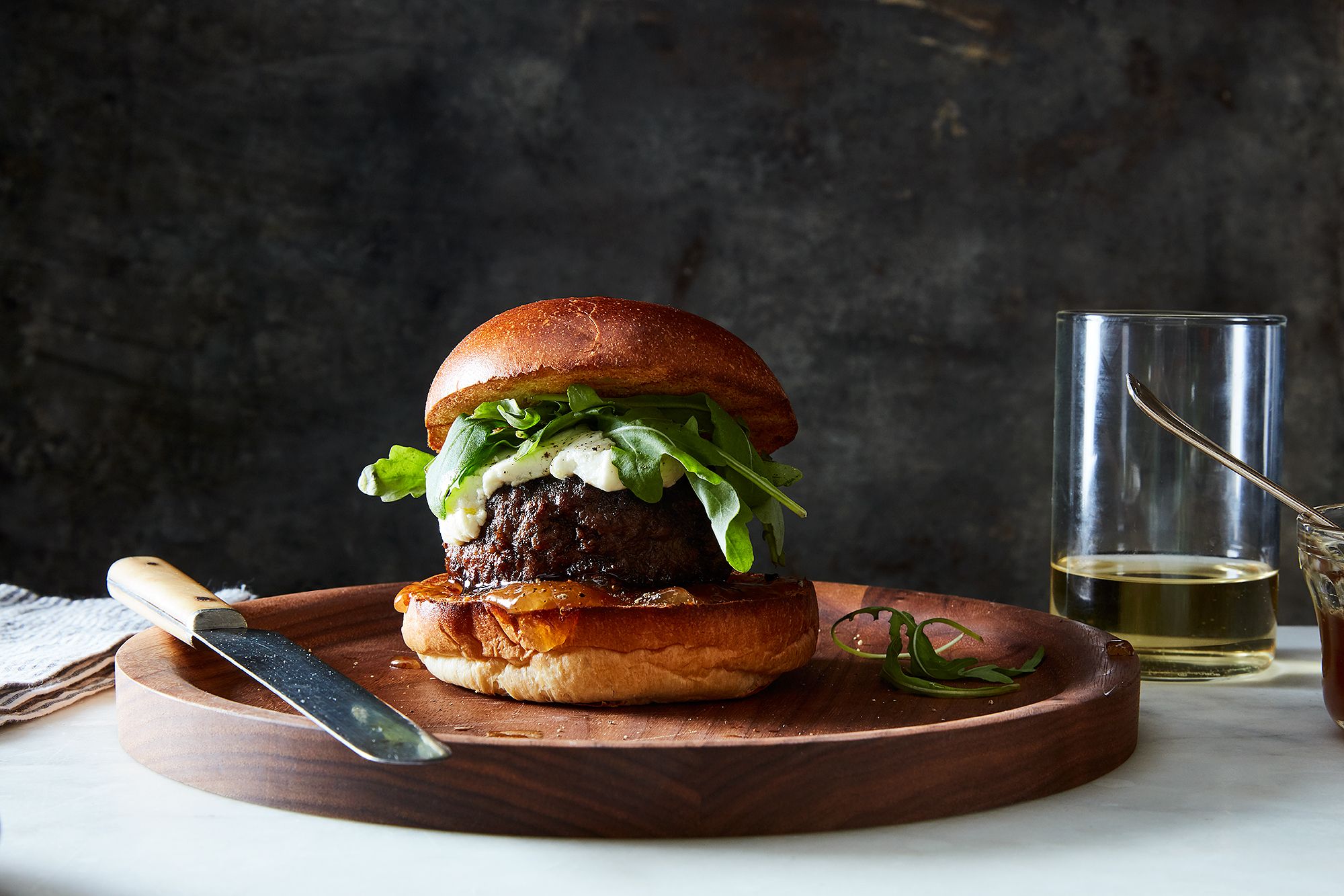 Burgers with fig jam, goat cheese & arugula